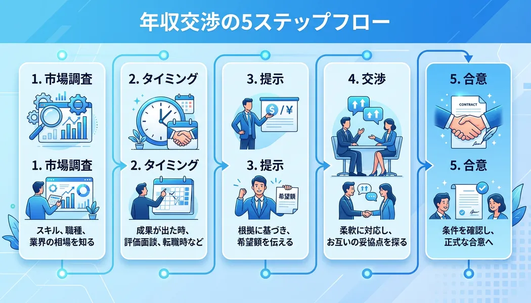 転職における年収交渉の流れとタイミングを整理する。