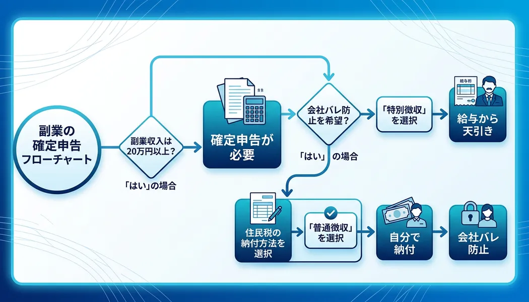 | 住民税バレ対策 | 確定申告で副業分を「普通徴収」に設定 |