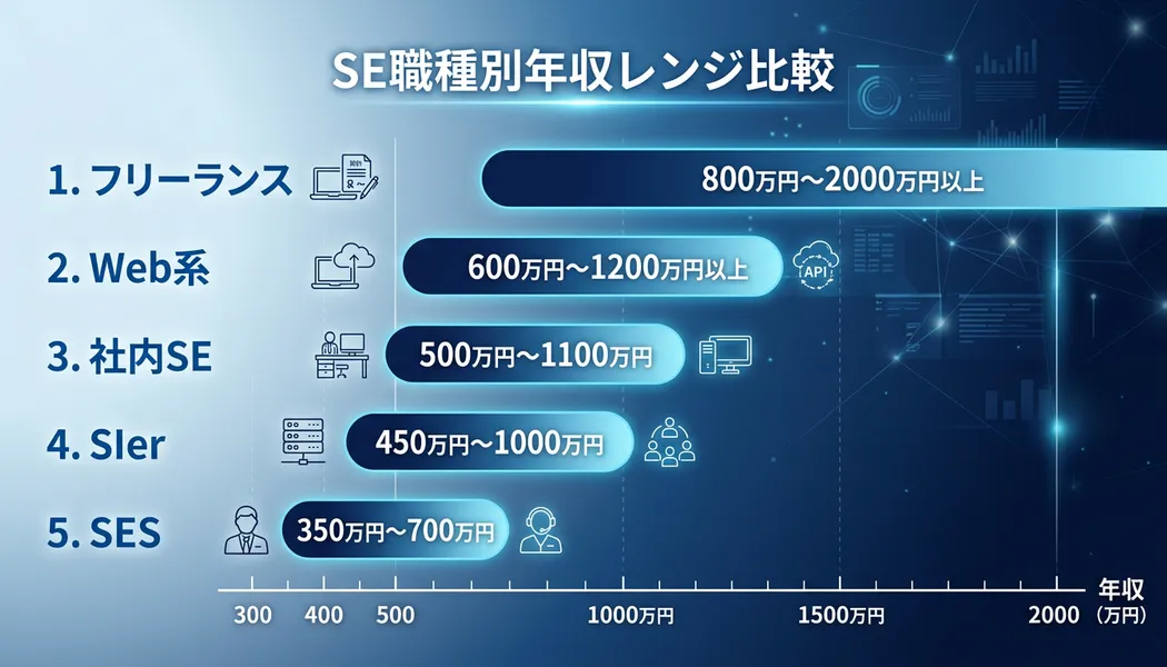 SEの年収は、所属する業界によっても大きく変わります。